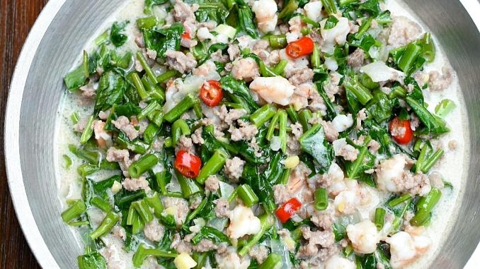 This Gising Gising is a Filipino vegetable stew recipe that is mixed with beans, coconut milk, labuyo chili, garlic, onions, and shrimp bagoong. This serves as a perfect side to grilled meat like bangus or chicken inasal.