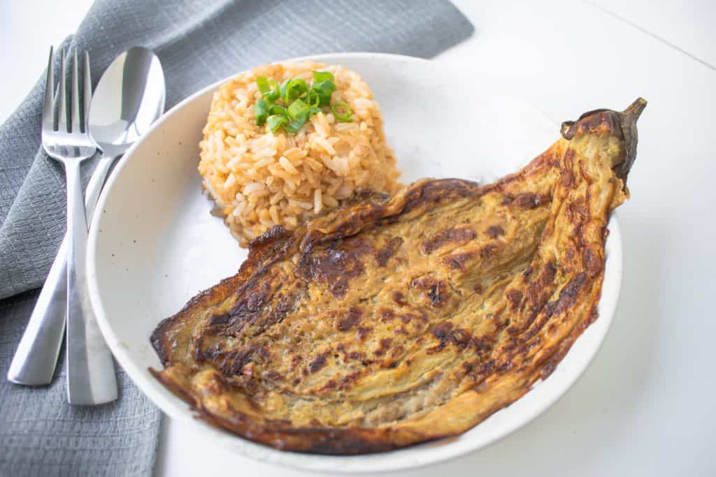 It is a Filipino eggplant omelet in which the eggplant is boiled or roasted first, followed by dipping in egg mixture before it is pan-frying in oil. It is considered a popular Filipino breakfast and lunch meal.
