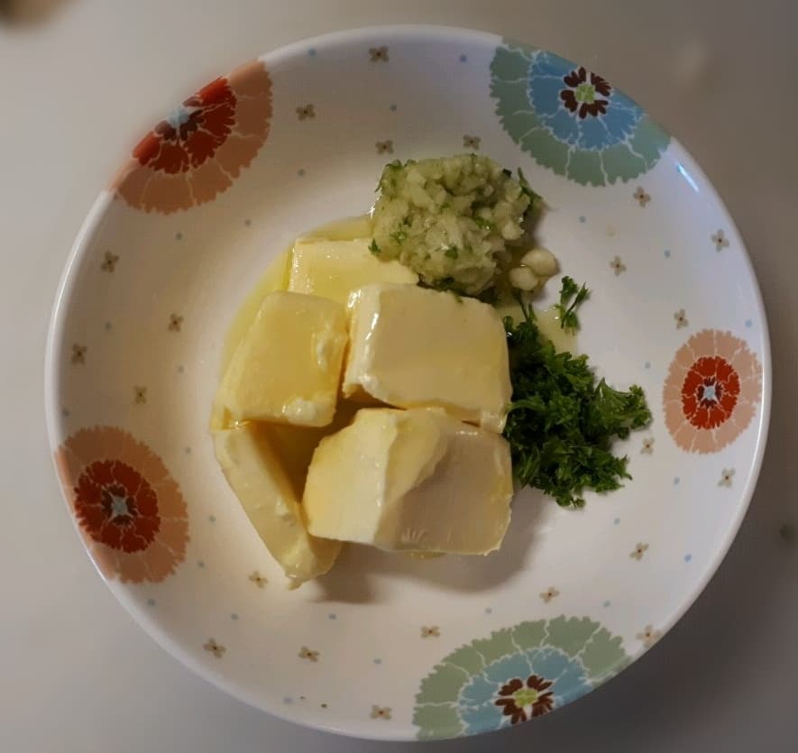 - Add the butter, olive oil, garlic, and parsley in a small bowl and mix it all together to make into a sauce
