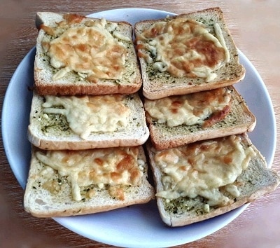 One time I made this cheesy garlic bread for my relatives and they all loved it, especially my baby nephews. Just to know, this bread is paired best with my mini pizza or pasta recipe such as my penne carbonara or salmon alfredo pasta.