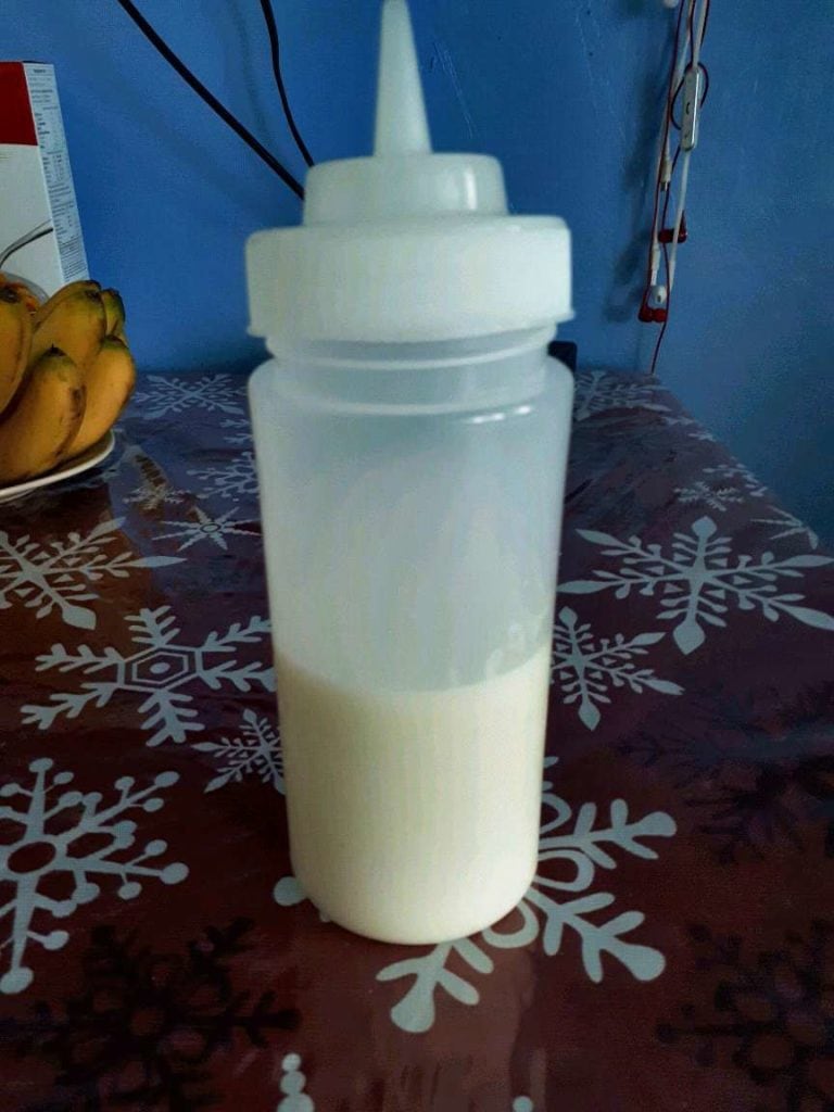 - Transfer into the plastic squeezes bottle and let it store in fridge for 3 hours before serving