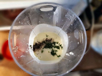 - For using a blender, you just put all the mayonnaise, yogurt, lemon juice, grated garlic or garlic powder, salt, and black pepper together and turn on the power.