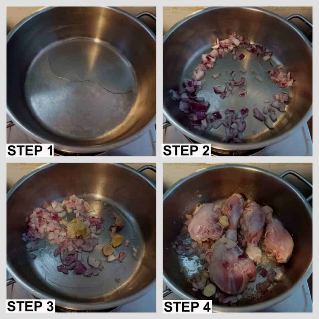 - Once I stirred them for a few minutes, I added the chicken leg and thigh and sauté it for 5 minutes