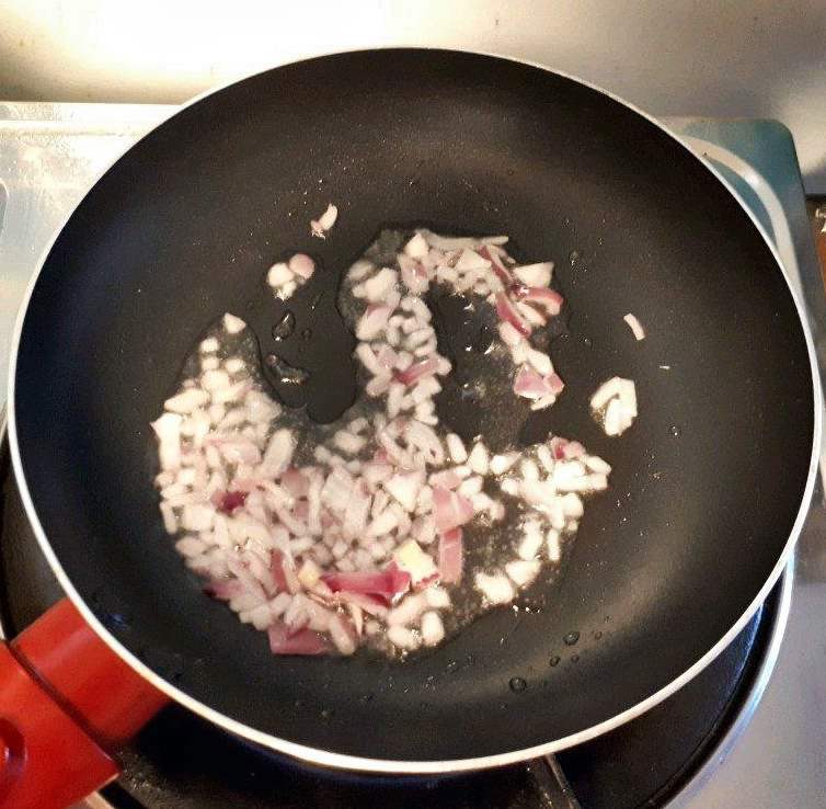 - Add a tablespoon of oil in the pan. Once it is hot, add the onion. Stir for few minutes till it turns light brown.
