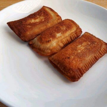 Add vegetable oil in the pan. Once it is hot, put each pie in the pan. Flip to the opposite side when it becomes brown. Once both sides become brown, transfer into the plate with a paper towel to help drain the excess oil.