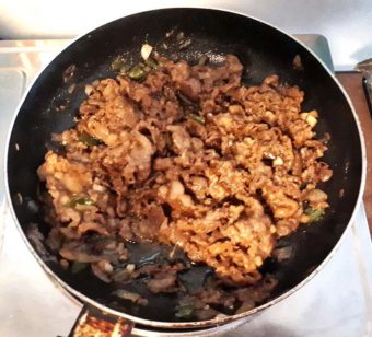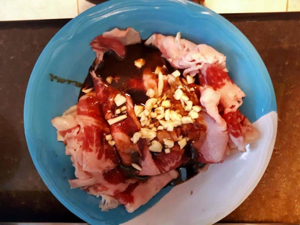 First of all, I am using a thinly sliced beef with fat contents. Using a beef with fats is more tender and juicy. Also, it is easier and faster to cook using this kind of meat.