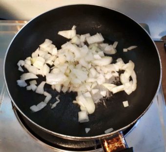 - Add chopped onion in the pan. Stir it for few minutes or till it become light brown.