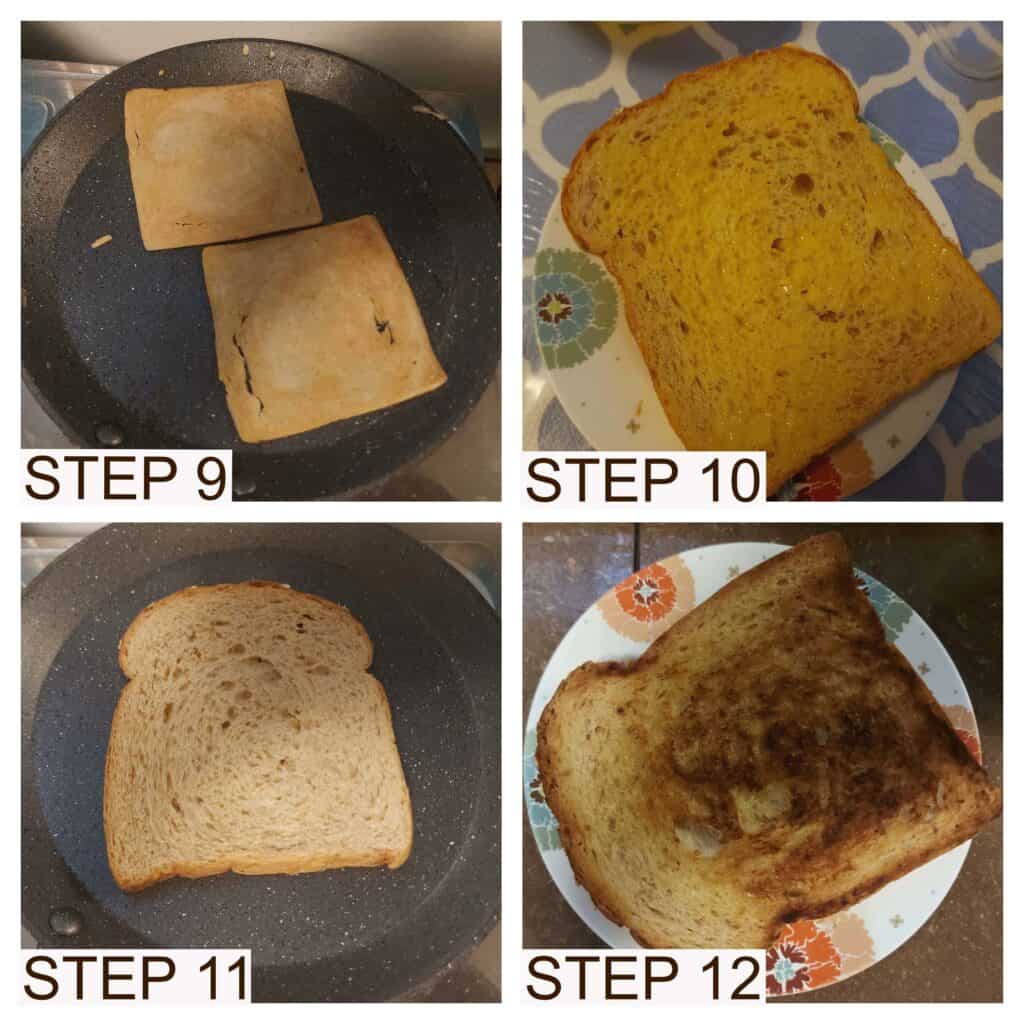 - Now to butter the bread, I just wait for the butter to become soft before I spread it on the bread. Again, by using the same pan, I put the bread there on medium-low heat and toast on both sides till it turns golden brown. Transfer to the plate and set aside.