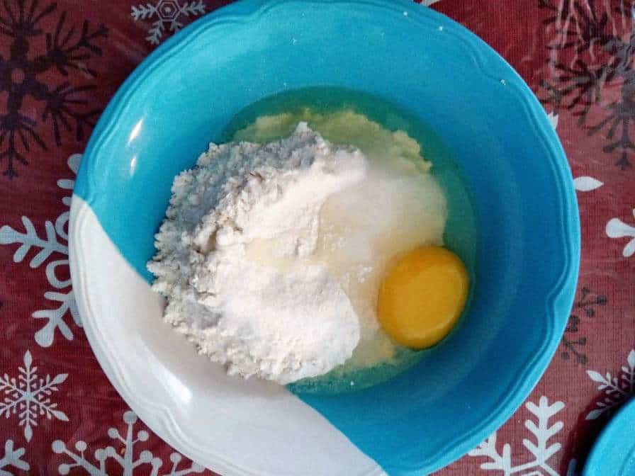 - In plate bowl B, add flour, egg and salt.