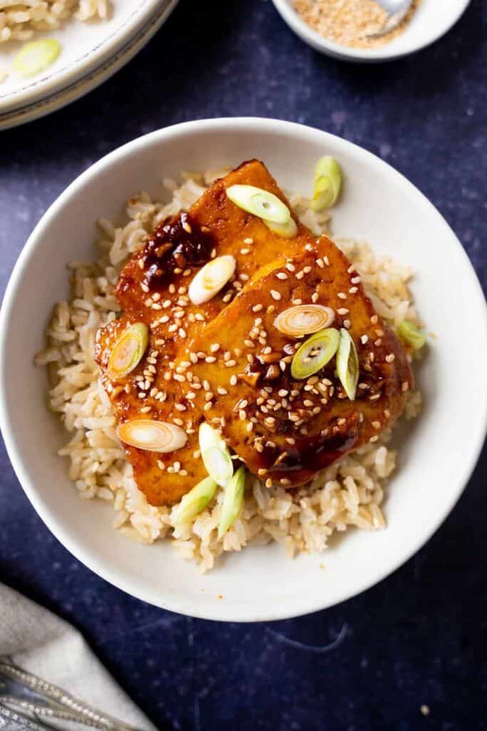 Braised gochujang tofu is a quick and simple dish that's packed with flavor. Known as dubu jorim in Korea, it requires frying tofu until golden brown and simmering it in a delicious sauce like soy sauce, sesame oil, and gochujang paste. It is usually served and eaten with rice.
