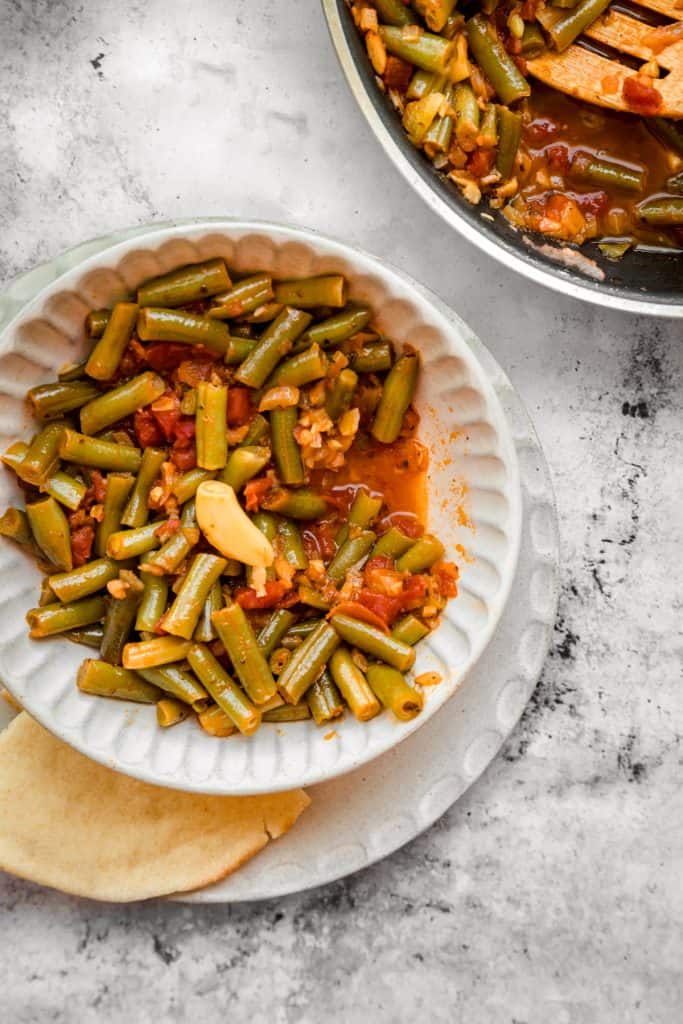 Loubia, also called Fasolia, is a Lebanese green bean dish that is mixed with tomatoes, garlic, olive oil, and other spices and herbs. This dish is best paired and eaten with vermicelli rice or any rice dish you like. In Morocco, Loubia is traditionally made using white beans, while the Lebanese used green beans.