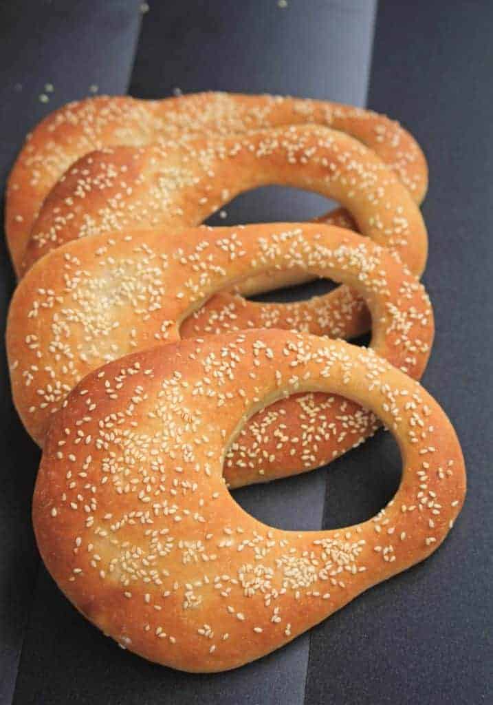 Ka'ak Bread | Lebanese Purse Bread, is a very popular flatbread found in the streets of Beirut, Lebanon. The bread is often shaped in a tear drop shape with a hole in the center making it look like a purse