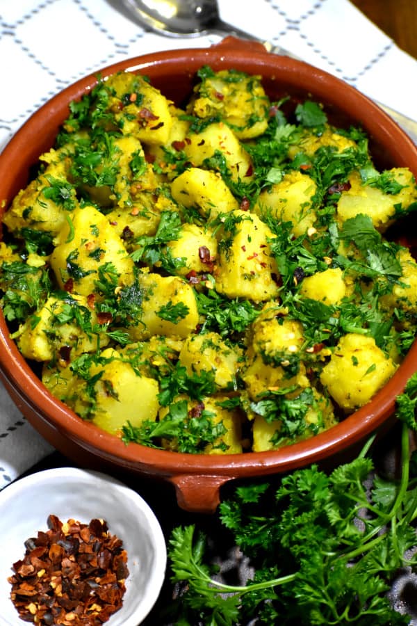 Batata Harra is a Lebanese appetizer and side dish, which is mixed with potatoes and other herbs and spices. It is one of the few spicy Lebanese dishes that I will recommend since it is mouthwatering which I like to serve it with pita bread.