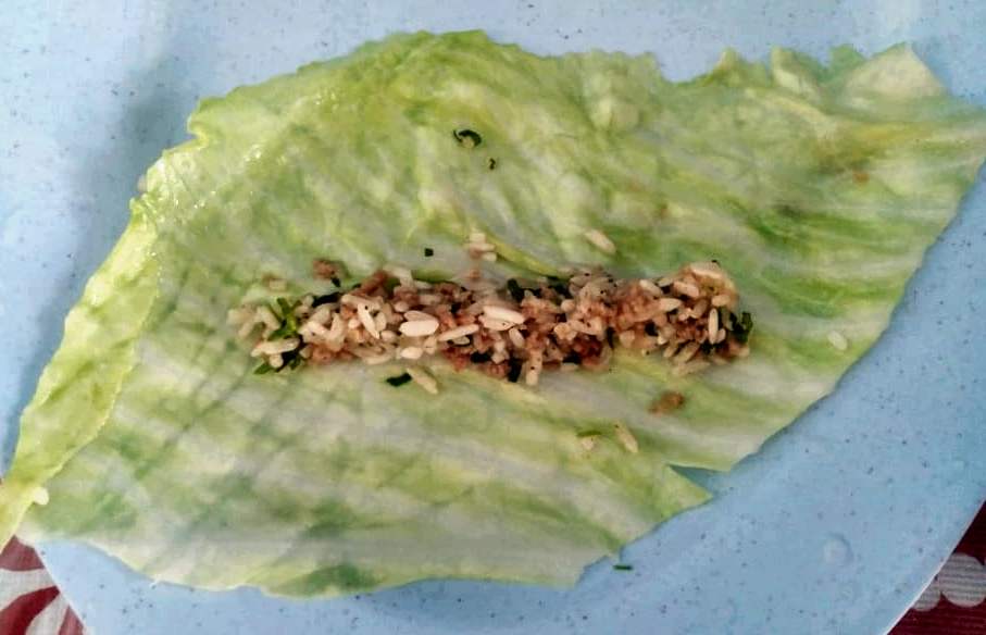- In each cabbage leaves, add 2 teaspoons to 1 tablespoon into the center of the leaves.