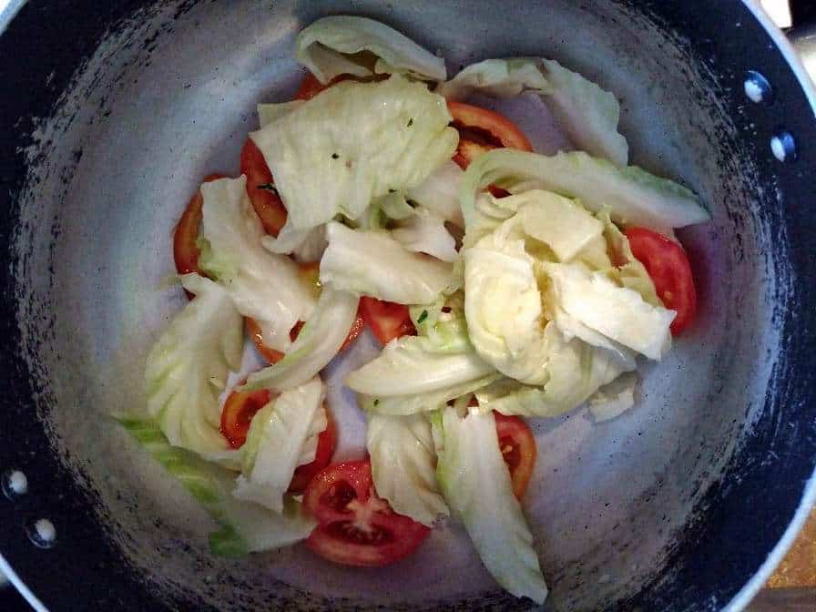 - To make a layer, add a sliced tomatoes and the broken cabbage leaves