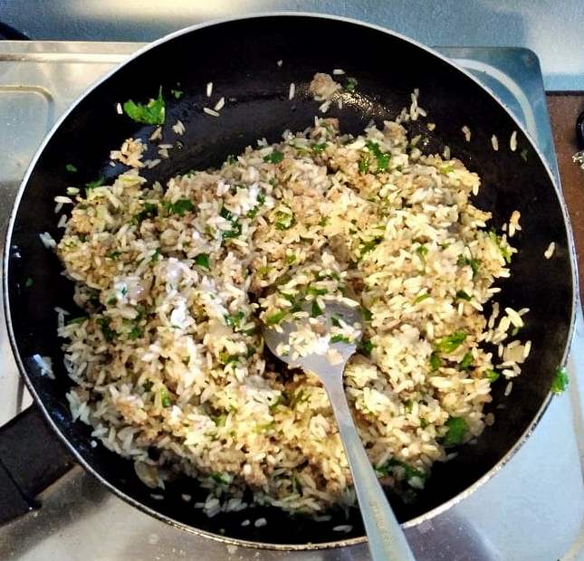 Once you saute them, add the cumin powder, chopped coriander leaves, salt, and black pepper. Stir again gently for several minutes before turning off the heat. And then I set aside.