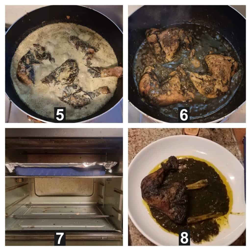 - After simmering, transfer the chicken to a baking pan and broil in the oven for 10 minutes to achieve a charred texture.