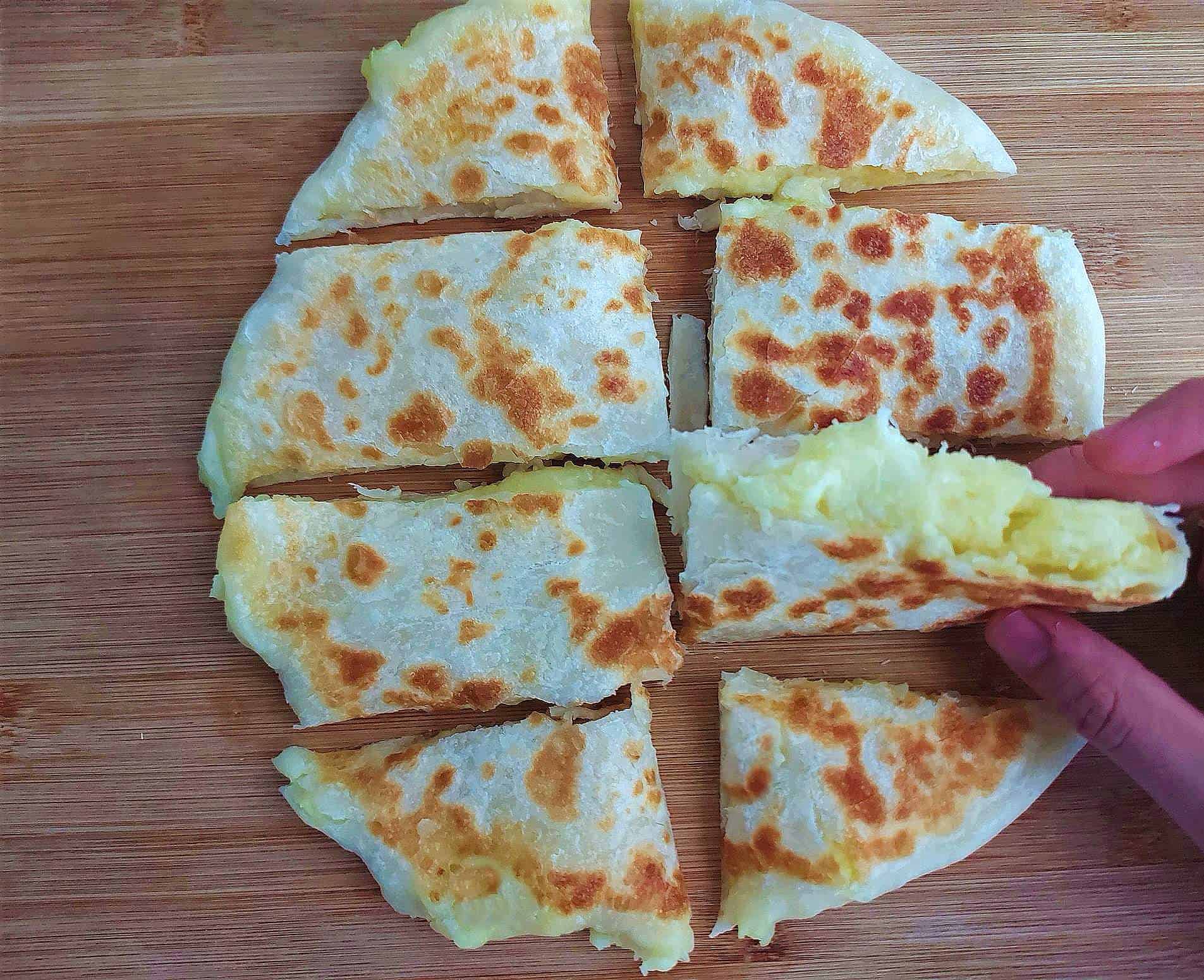 Potato Cheese Bread is a non-baked bread which is stuffed with mashed potatoes, and mozzarella cheese. This type of bread recipe is cooked in a pan rather than using the oven.