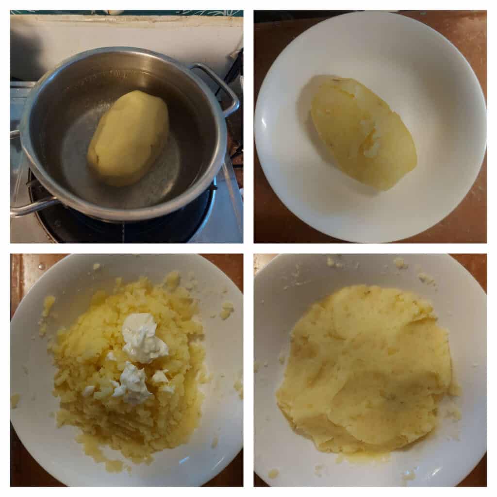 - Drain water from the potato and wait for 5 minutes to let it cool down.