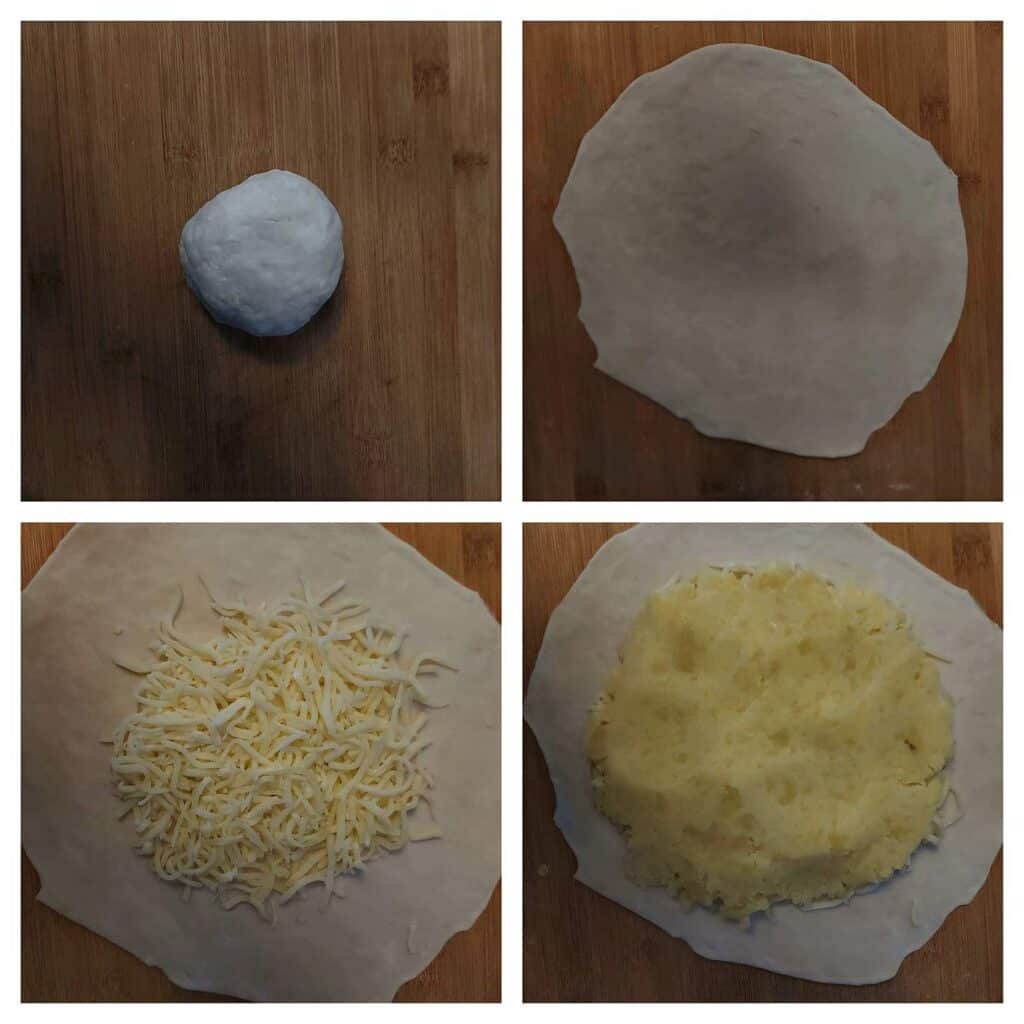 - In this part, I placed the dough on the clean table and roll into an 8-10 inches circle. The exact measurement depends on you.