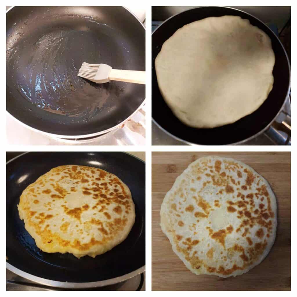 - Brush the pan with vegetable oil and then place the bread on the pan in low heat.