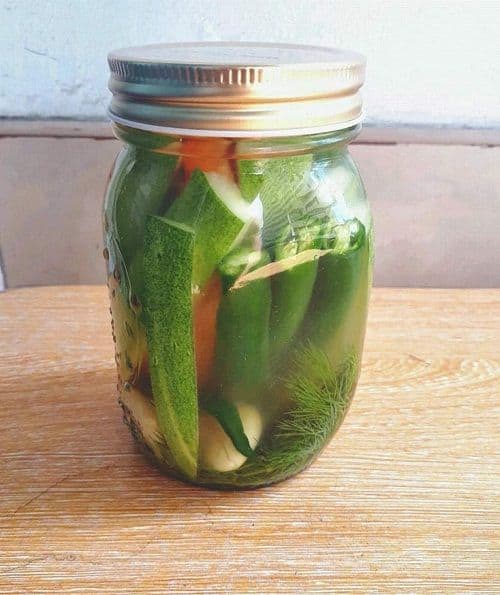 Refrigerator Dill Pickles Recipe are vegetables that are immersed with an brine solution and stored in a jar. It is placed in a refrigerator for at least a week before serving.
