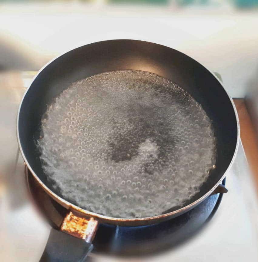 - Add water and vinegar in a pan. Once it is boiling or simmering, add sugar and salt, and mix well. One it is fully dissolved, turn off the heat and let it cool down.