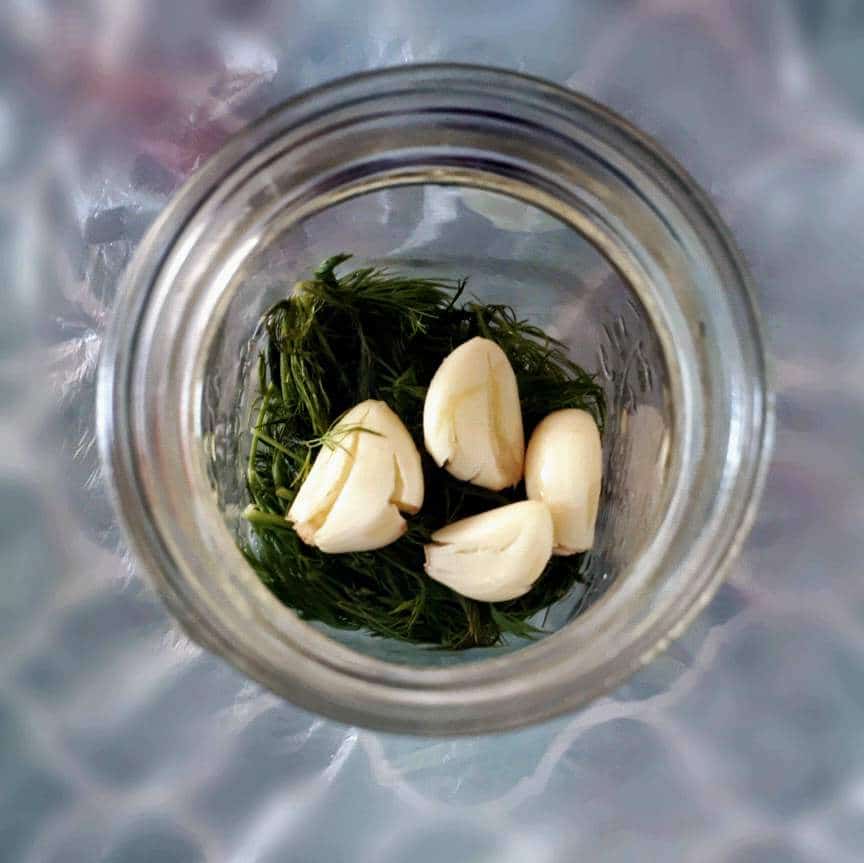 - Put the dill herbs in the bottom of Jar. After that, add the garlic above the dills.