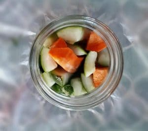 Firstly, I am using three different vegetable pickles which are cucumber, carrot, and green chilies. Normally, most pickles used the only cucumber, but I like to add other vegetables. Also, adding green chilies will give its nice spicy flavor of my pickle, and I love eating green chili alone. In addition to that, I add garlic to add a nice garlicky flavor of this recipe.
