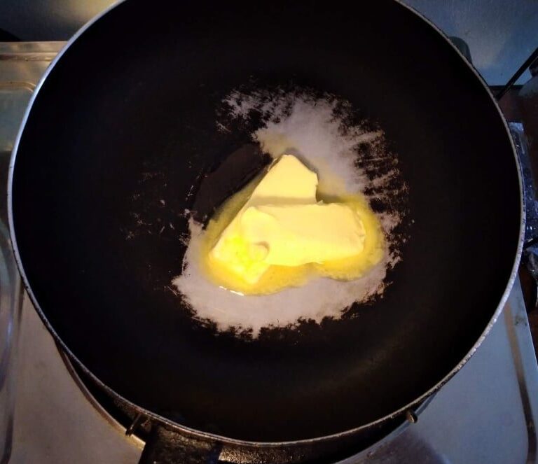 - Add unsalted butter to the pan. Wait till it fully melted