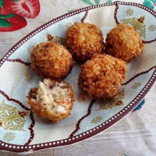 This croquette is usually served as an appetizer which we eat alone. However, I sometimes like to serve it with pasta or healthy green salads and with a dipping sauce of your choice.