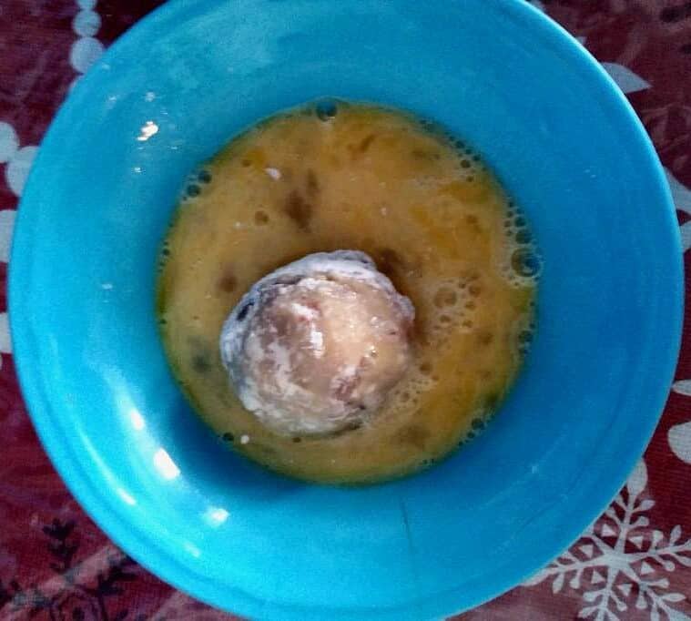 - For coating and making a ball shape, you will need Egg, Flour, and Breadcrumb. And cooking oil for deep frying this dumpling-like ball.