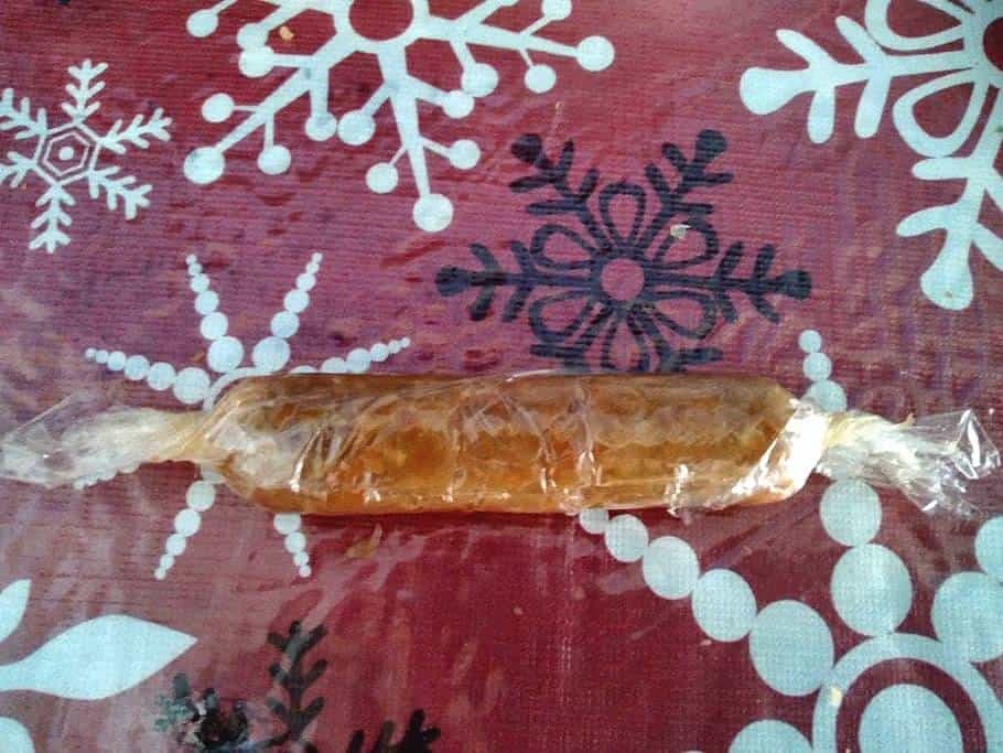 - Once hot, remove the sausage from the plastic wrap and put it into the pan