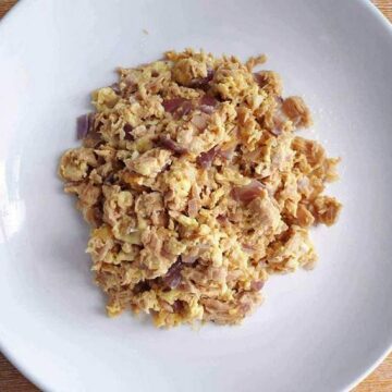 Tuna Scrambled Egg is a breakfast egg recipe that is combine using canned tuna, chopped onion, and olive oil. It is an easy, nutritious, and Keto friendly recipe which is low in carbs.
